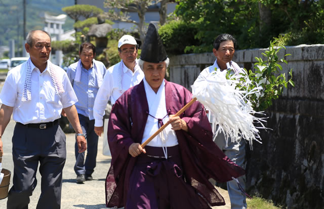当日は先ず、宮司が各家を回り家々を祓い清め、その後から獅子頭に厳島神社の御分霊を遷した獅子が家々を舞い、各家では玄関を始め家の雨戸を開け獅子が舞い奏でる時の獅子の風を家に入れ込み、梅雨のうっとうしさを吹き祓い、清々しい神の風を家中に取り込みます。この獅子舞は、約三〇〇年の間絶えることなく続けられています。