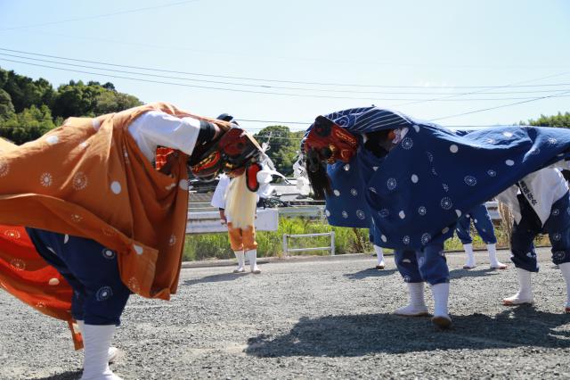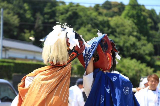 令和元年6月23日午前6時より厳島神社獅子舞を行います。当日は、午前6時から御潮井取り、その後氏子各家(120戸)を宮司がお祓いし、獅子がその家々を笛、太鼓、すり金(手拍子)の音に合わせ舞奏で、宮司、獅子が厳島神社に戻り、舞納め終了するのは午後7時~7時半頃になります。